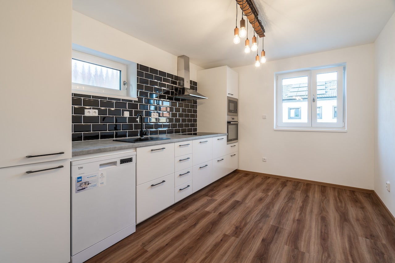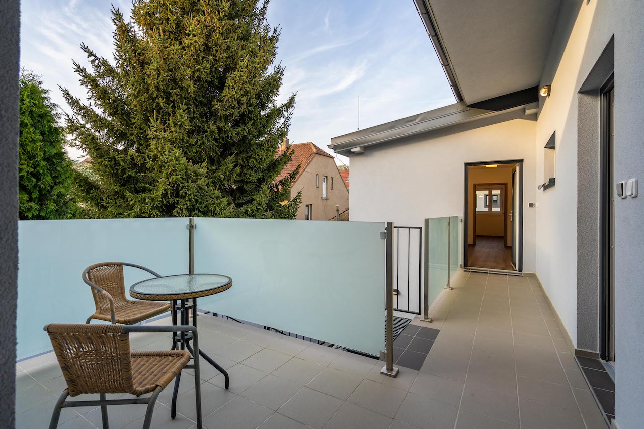 Dispozice domu není zcela standardní, lze jej využít například jako dvě samostatné bytové jednotky o podlahové ploše cca 160m2, další variantou je využití jednoho patra bydlení, druhého k podnikání a objekt by se dal klidně rozdělit na pět samostatných obytných jednotek s veškerým zázemím. V přízemí jsou dvě kuchyně, tři koupelny, obývací pokoj, pracovna, ložnice a dětský pokoj. V patře pak na stejném půdorysu nalezneme o jednu kuchyň více, která je umístěna v pracovně a dává tak možnost k vytvoření samostatné jednotky 1+kk. Abyste získali lepší přehled o dispozici či potenciálu vily, podívejte se na přiložené půdorysy nebo si dům rovnou projděte ve virtuální prohlídce.