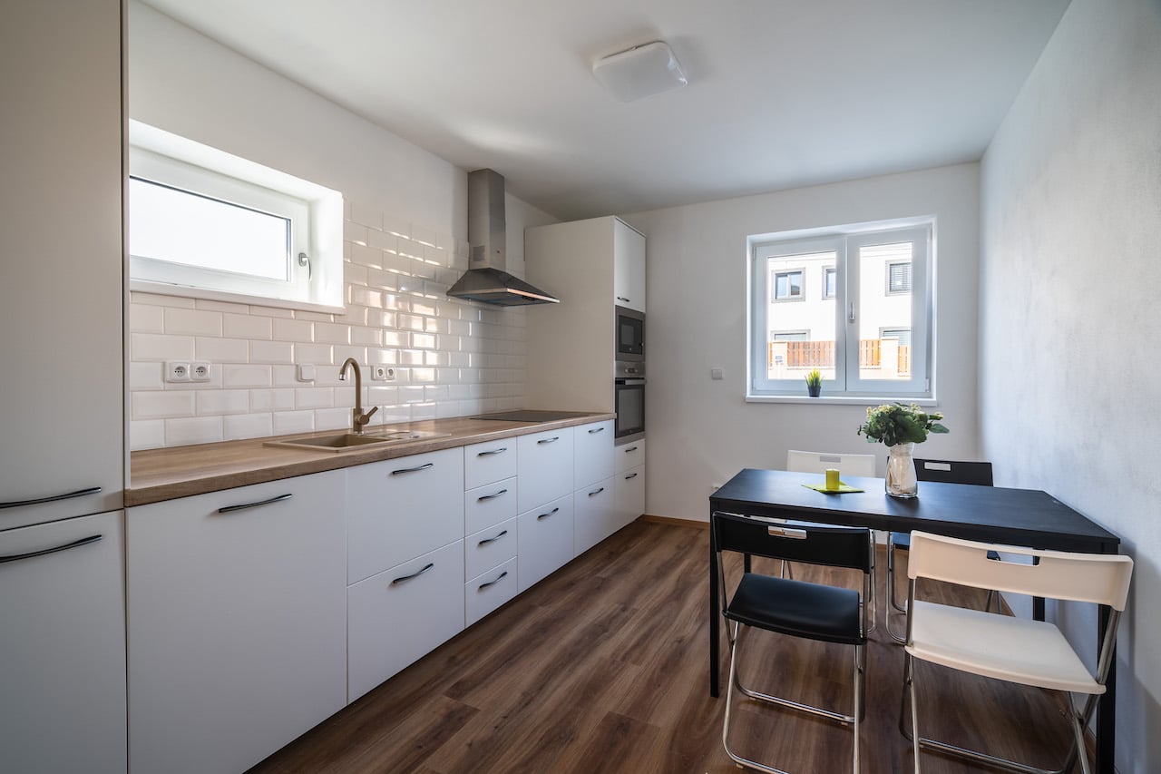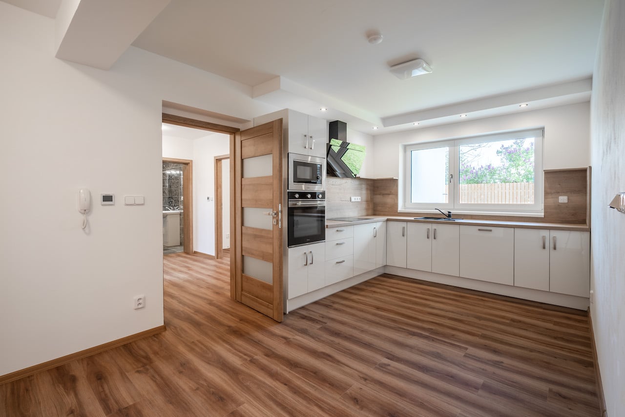kuchyňské linky vč. spotřebičů, koupelny vč. toalet, sprchových koutů a bojlerů na ohřev vody