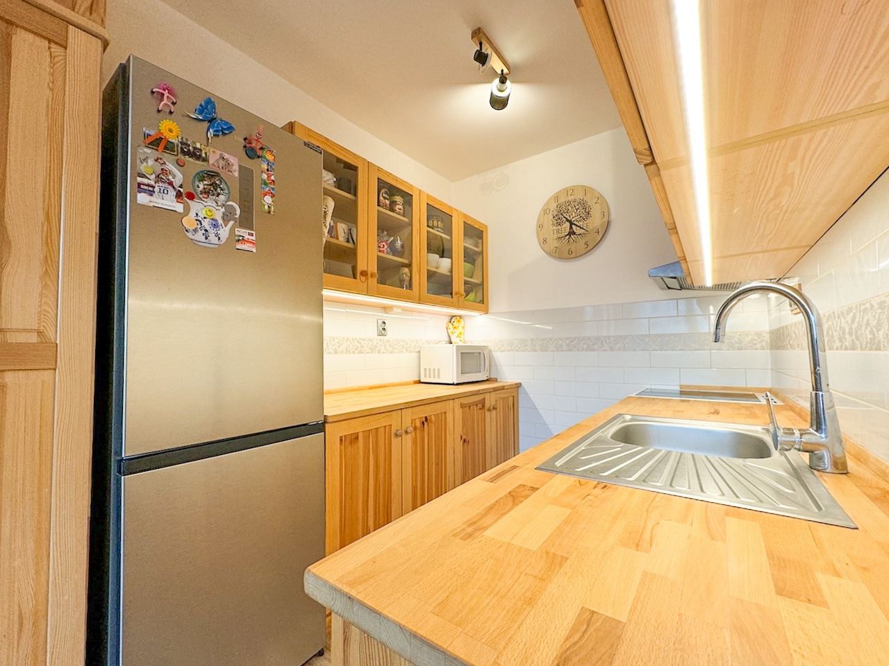 Startovací bydlení, investice, klidné místo na stáří? Na prodej nabízíme sice menší, ale o to hezčí byt v obci Kamenice. Byt je o dispozici 1+kk se samostatnou koupelnou a WC a nachází se ve 2 podlaží zatepleného panelového domu. K dispozici je i sklepní kóje 5m2. Byt prošel celkovou rekonstrukcí v roce 2021 a to včetně rozvodů elektřiny, vody, štukování, malovaní, obkladů, dlažby, vynilové podlahy v obytné části a také bylo pořízena nová kuchyňská linka.