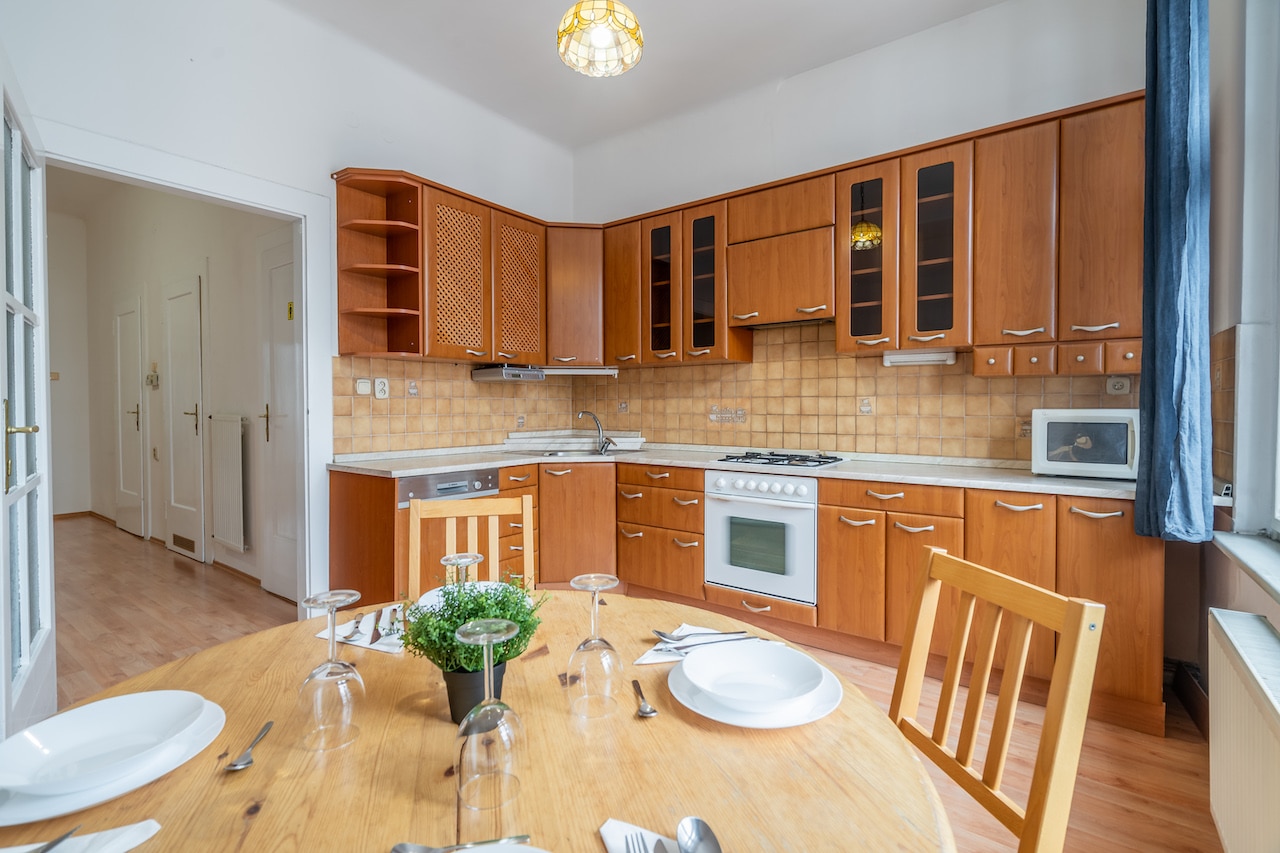Byt se nachází v domě v ulici Pobřežní, nedaleko metra Křižíkova, který má průjezd i do ulice Sokolovská. Ačkoliv si byt majitelé již před pár lety rekonstruovali, dá se i nyní s menšími náklady předělat dle aktuálních trendů. Dispozice 3+1, celkem 98m2 (byt 85m2, balkon 6m2, terasa 3m2, sklep 2m2) určitě nabízí spoustu možností a variant. V plánku naleznete přesné rozložení místností vč. rozměrů.