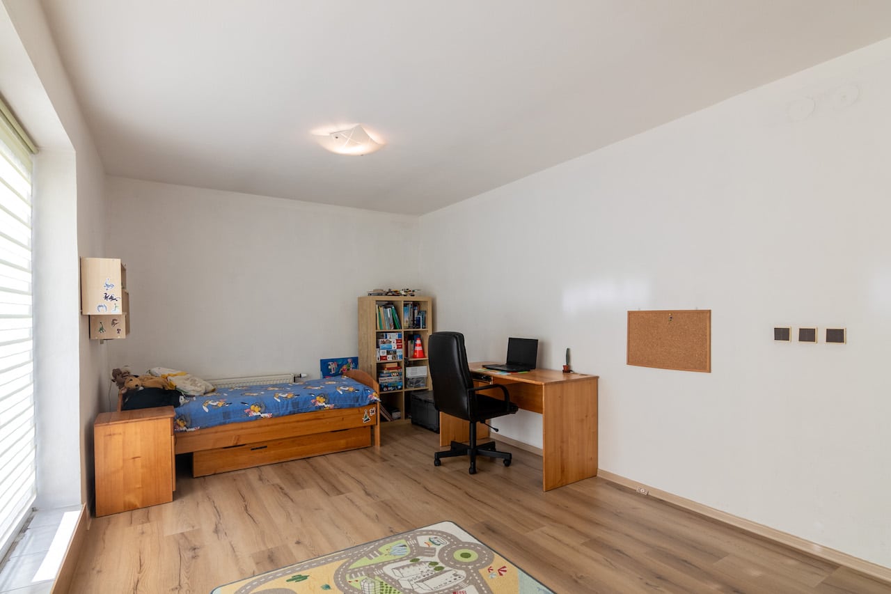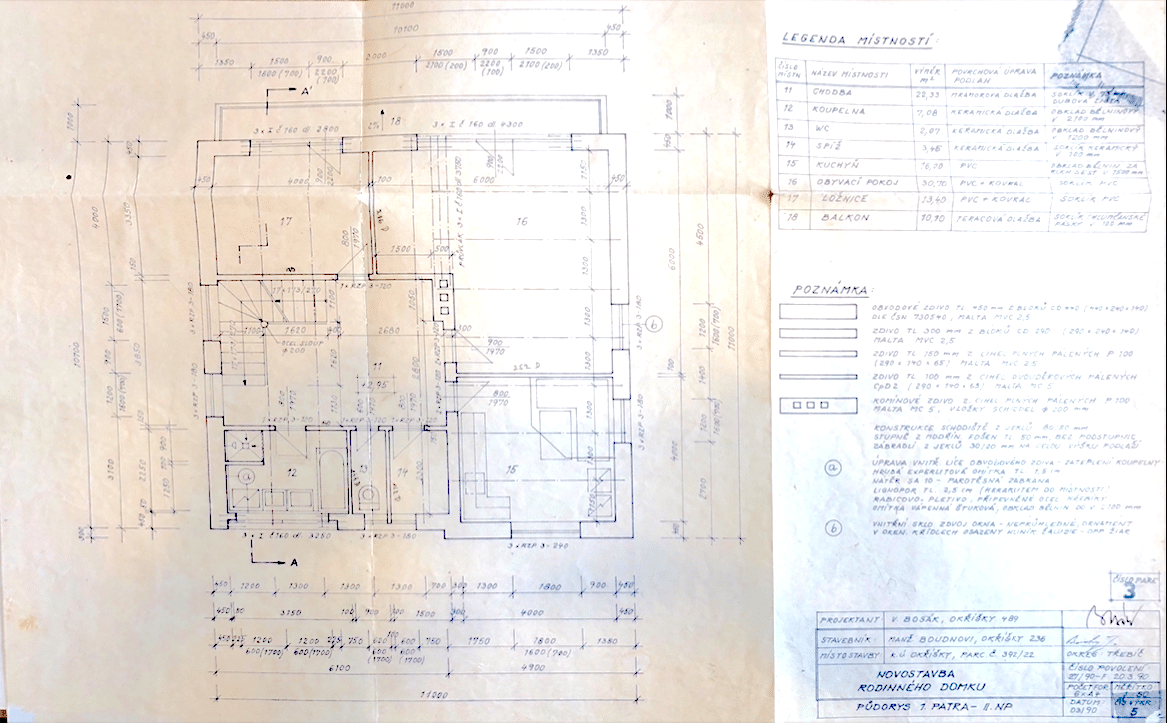 Druhé podlaží nabízí 4 ložnice (12 až 21m2) velkou chodbu odkud se krom všech pokojů vchází také do šatny, koupelny (v rekonstrukci) a wc. Schodištěm se pak dostaneme na půdu, která je vhodná k vybudování podkroví. Dům je téměř zcela podsklepen a krom technických místností a skladů je zde k dispozici kuchyňský kout a prádelna se sušárnou.