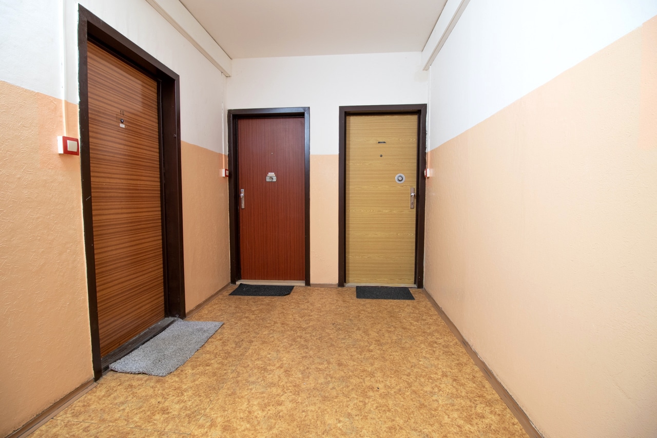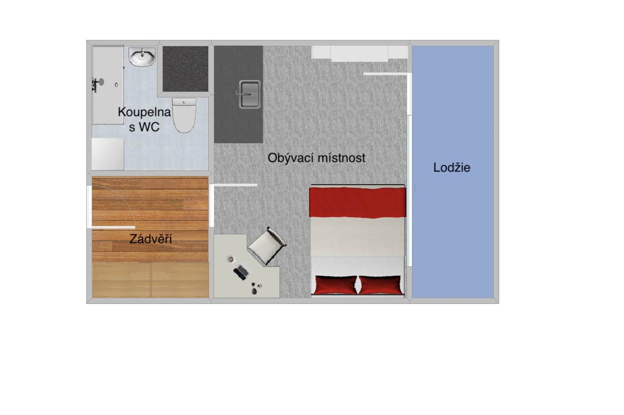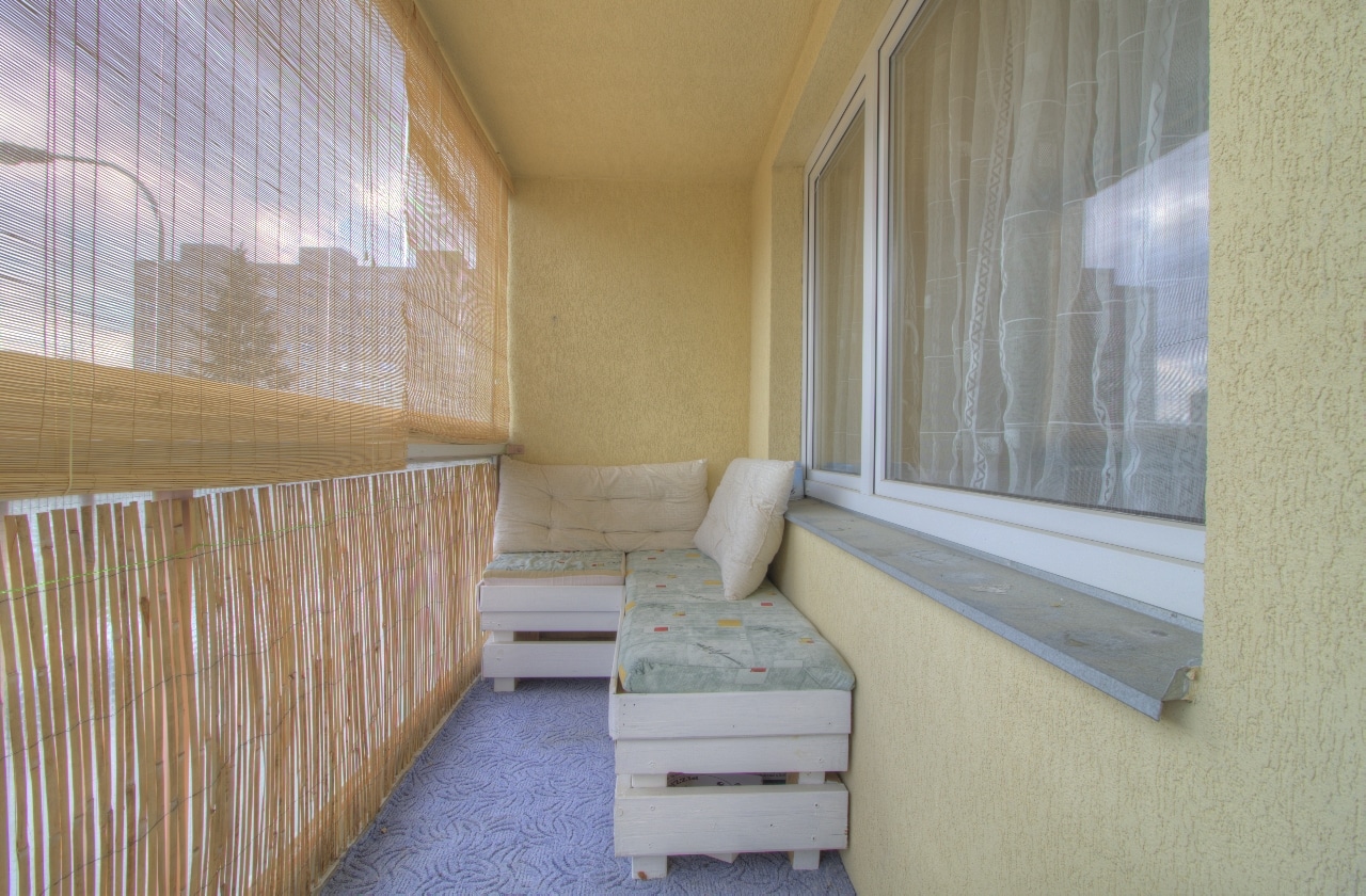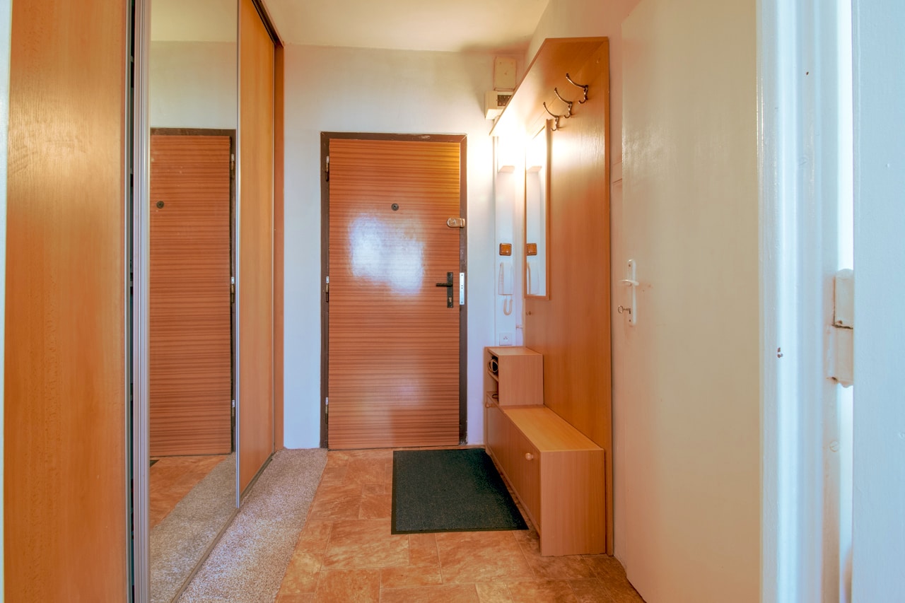 Byt prošel částečnou rekonstrukcí (obytná místnost). Sestává se z obytné místnosti s kuchyňským koutem, koupelnou se sprchovým koutem, wc a pračkou a zasklenou lodžií s výhledem na východ. Vstupní chodba je vybavena vestavěnou skříní s k bytu náleží sklepní kóje.