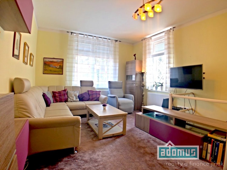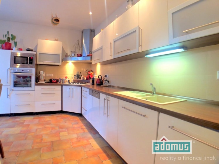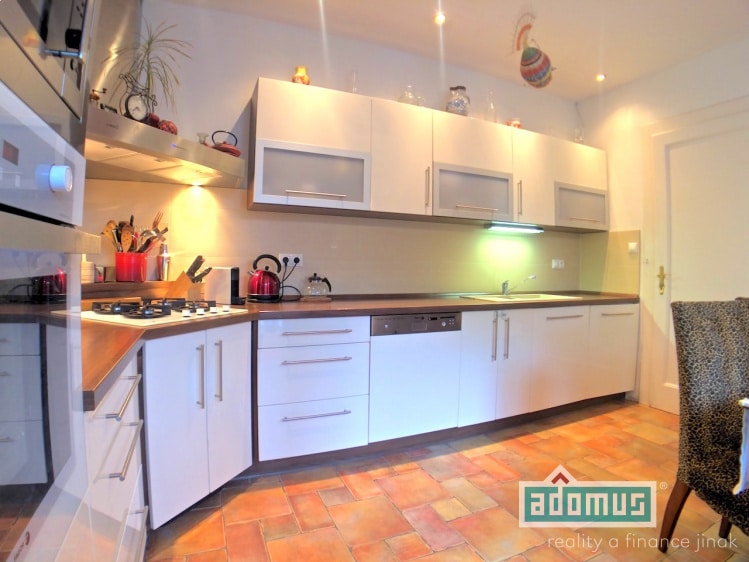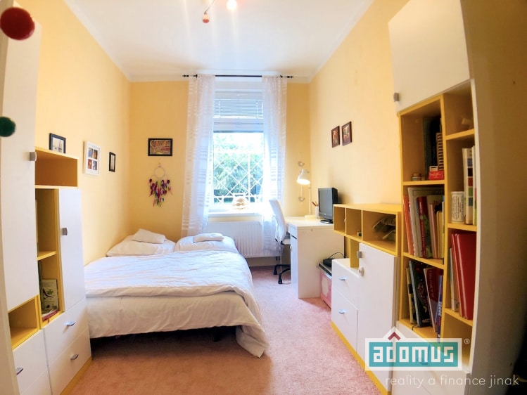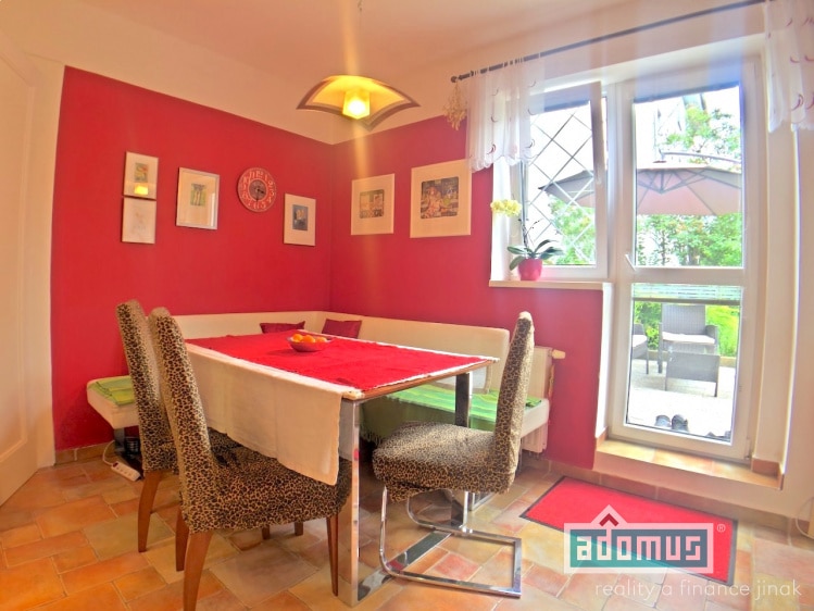 Prostorný byt v rodinném domě se zahradou, garáží a sklepem? Právě tato možnost se Vám nabízí k prodeji. Mezonetový byt 4+1 s terasou včetně 60% podílu na společných prostorech (zahrada, sklep, sklad podkroví) k němuž patří i samostatně stojící garáž. Byt, nacházející se v přízemí vily, je po kompletní rekonstrukci (2011), kdy došlo i k rozšíření o místnost s okny v suterénu, kterou lze využít např. jako pracovnu. V přízemí je obývací pokoj, ložnice, dětský pokoj, kuchyň, chodba, koupelna a samostatné wc. Dostatek úložných prostor zajišťují velké skříně v chodbě i ložnicích. Kuchyň je zařízena namíru a vybavena spotřebiči značky Fagor. Navíc je zde vstup na terasu s příjemným posezením ve stínu vzrostlých tújí.