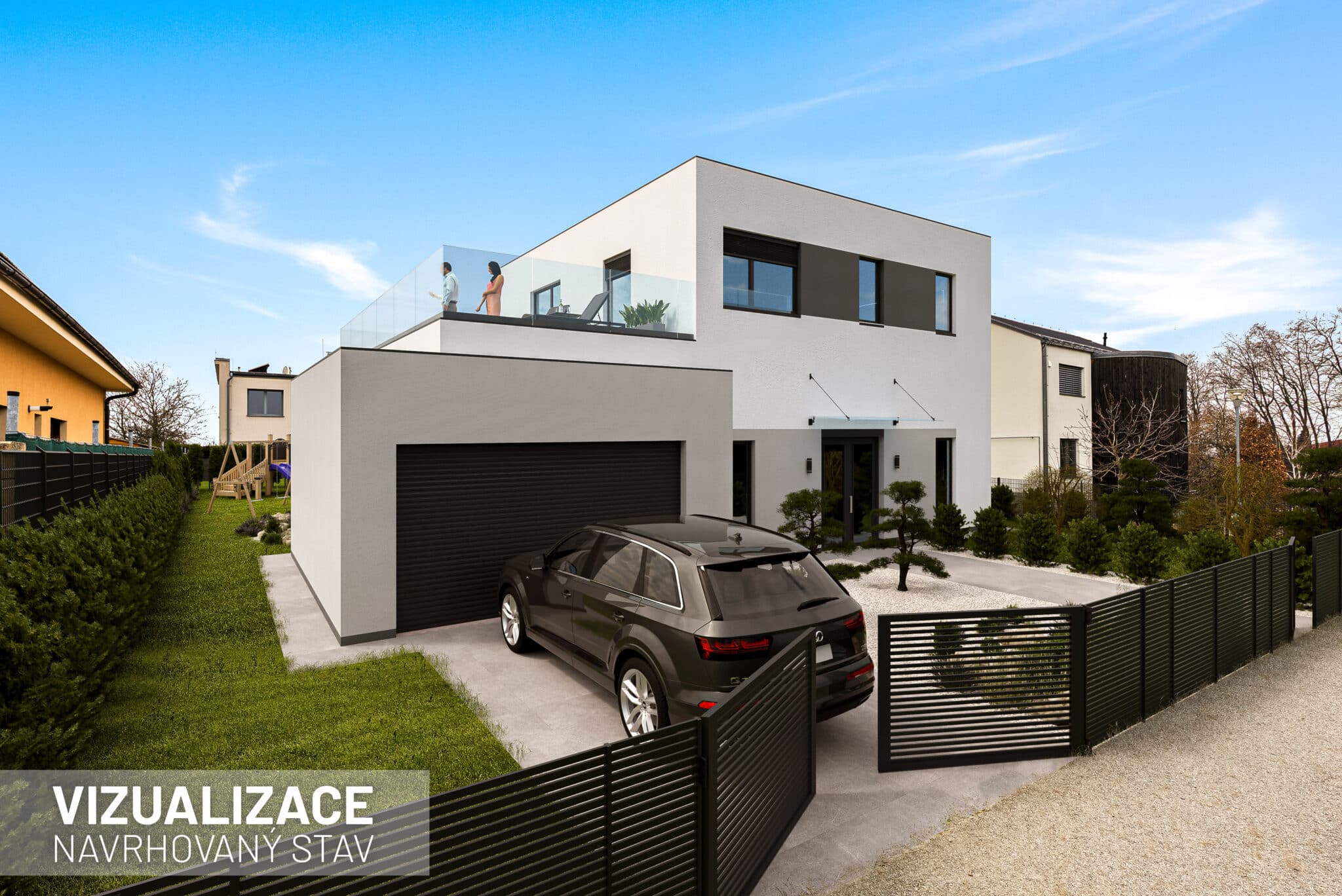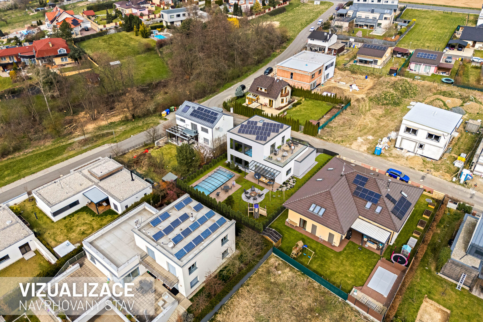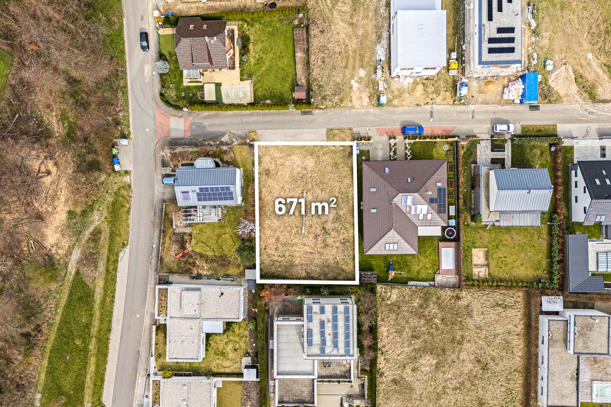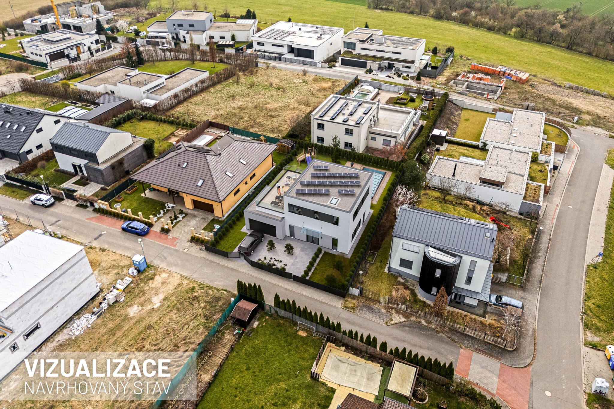 Stavební pozemek o velikosti 671 metrů čtverečních poskytuje dostatek prostoru pro rodinný dům i zahradu. Velkou výhodou je chytře řešená zástavba v okolí. Rodinné domy v sousedství jsou navrženy tak, aby si každá rodina užila maximální soukromí. Jeden z nich má dokonce vjezd do garáže v ulici za rohem.