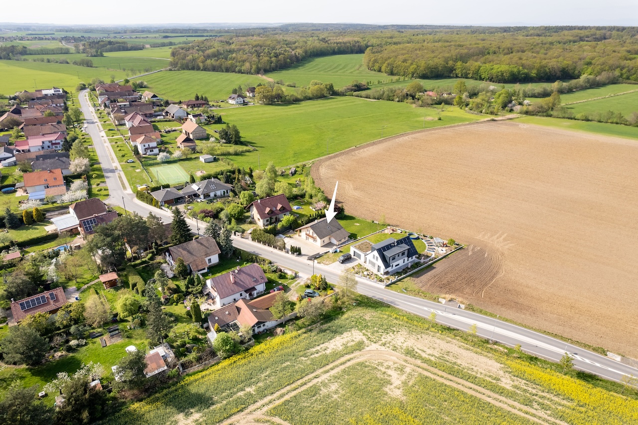 Mezi obcí a dálnicí je les a klidné prostředí obce tak není rušeno. Dostupná je i veškerá občanská vybavenost (Hrachoviště a Býšť). U vjezdu na pozemek je na dálkově ovládaná brána.