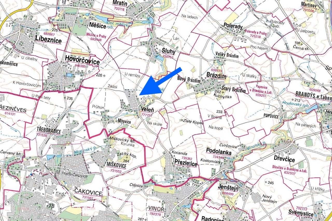 Kousek od pozemku (cca 500 metrů) se nachází autobusová zastávka U Pomníku, odkud je to 20minut na metro Letňany, autem pak cca 30 minut do centra.