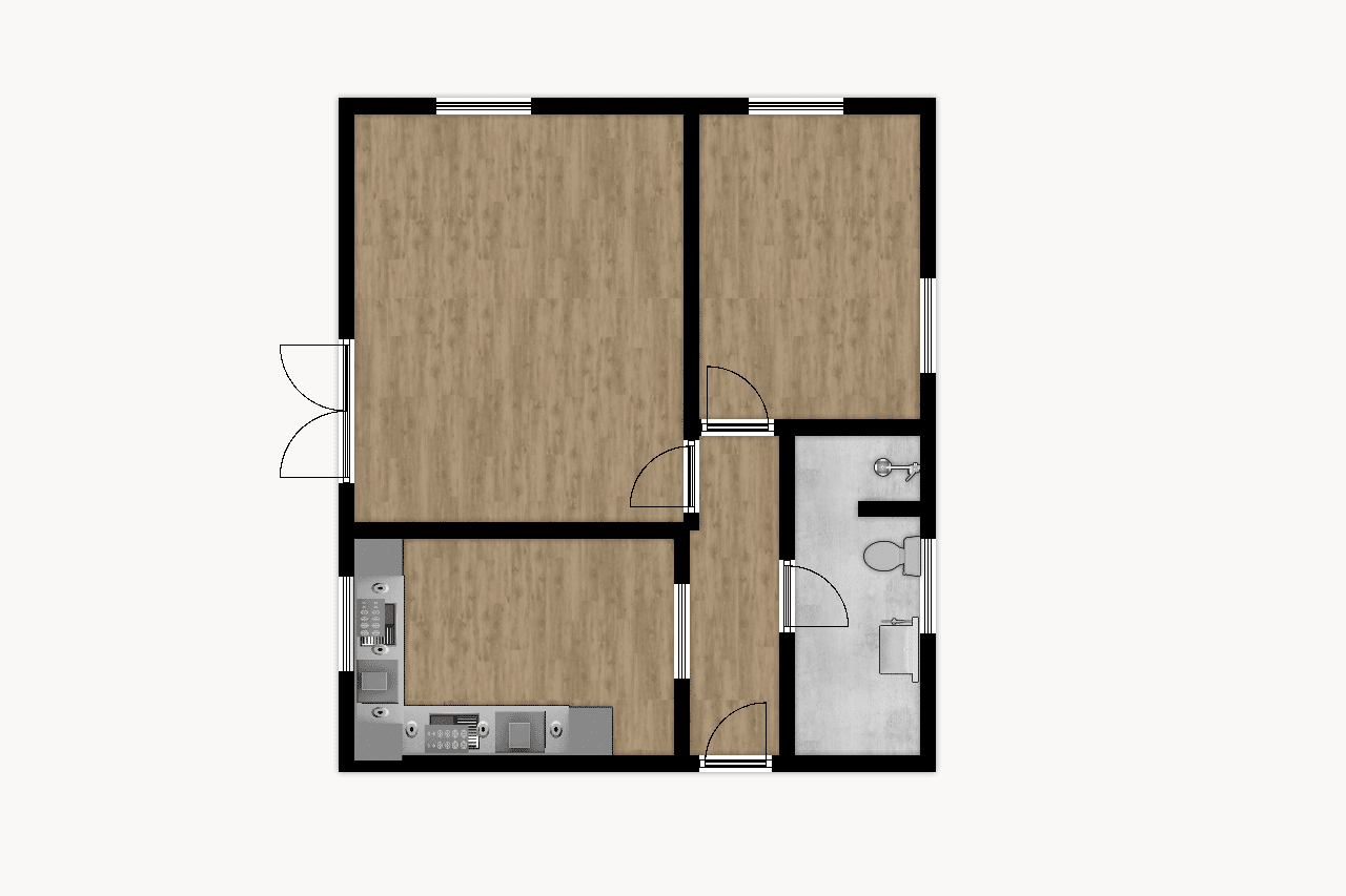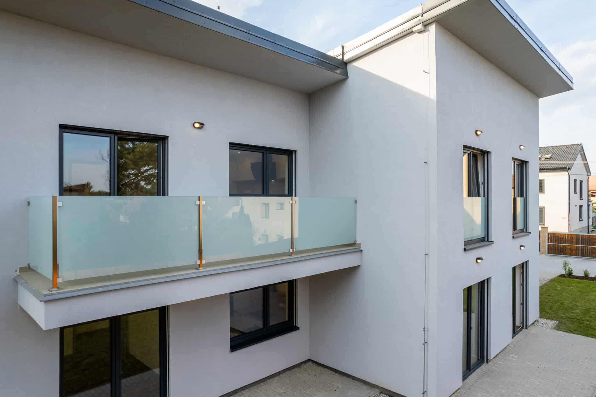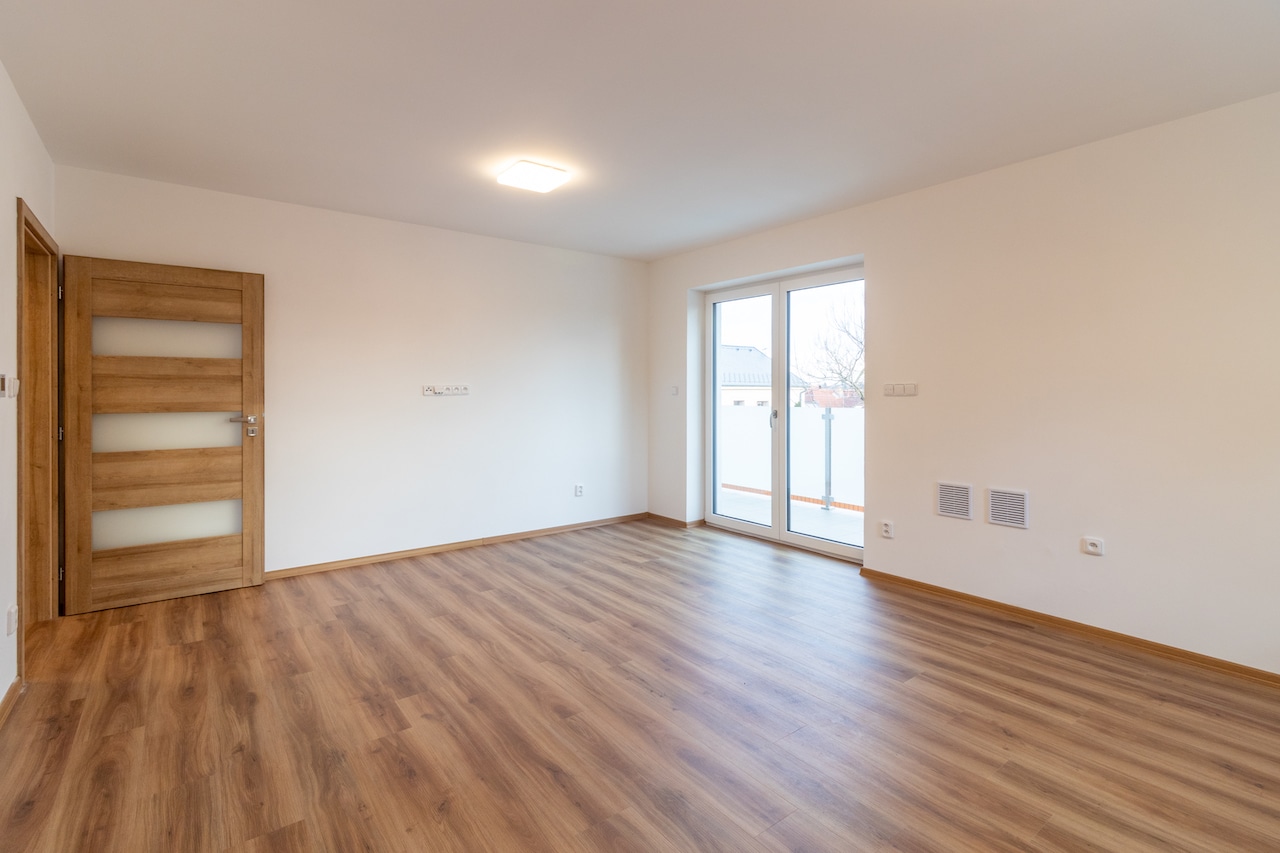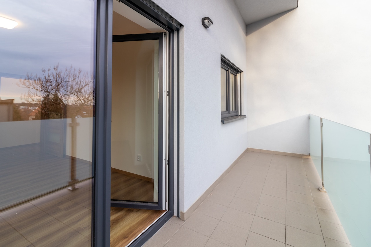Byt se nachází v 2. patře nově postavené vily a čeká na svého prvního obyvatele. Dispozičně se jedná o 2+1. Ze vstupní chodby je vchod do všech místností. Koupelny se sprchovým koutem, toaletou a místem na pračku. Kuchyň je vybavena kuchyňskou linkou i se spotřebiči na míru (lednice, mrazák, myčka, dřez, sporák, trouba, mikrovlnná trouba, digestoř) a má plochu 18m2. Největší místností se 22m2 je obývací pokoj, odkud je vstup na prostorný balkon (8m2). Druhý, menší pokoj, lze využít jako ložnici nebo třeba pracovnu. Dostatek světla zajišťují okna i dveře , které mají elektricky ovládané venkovní žaluzie a jsou orientovány na jihozápad. Ohřev vody je zajištěn bojlerem a určitě oceníte podlahové vytápění.