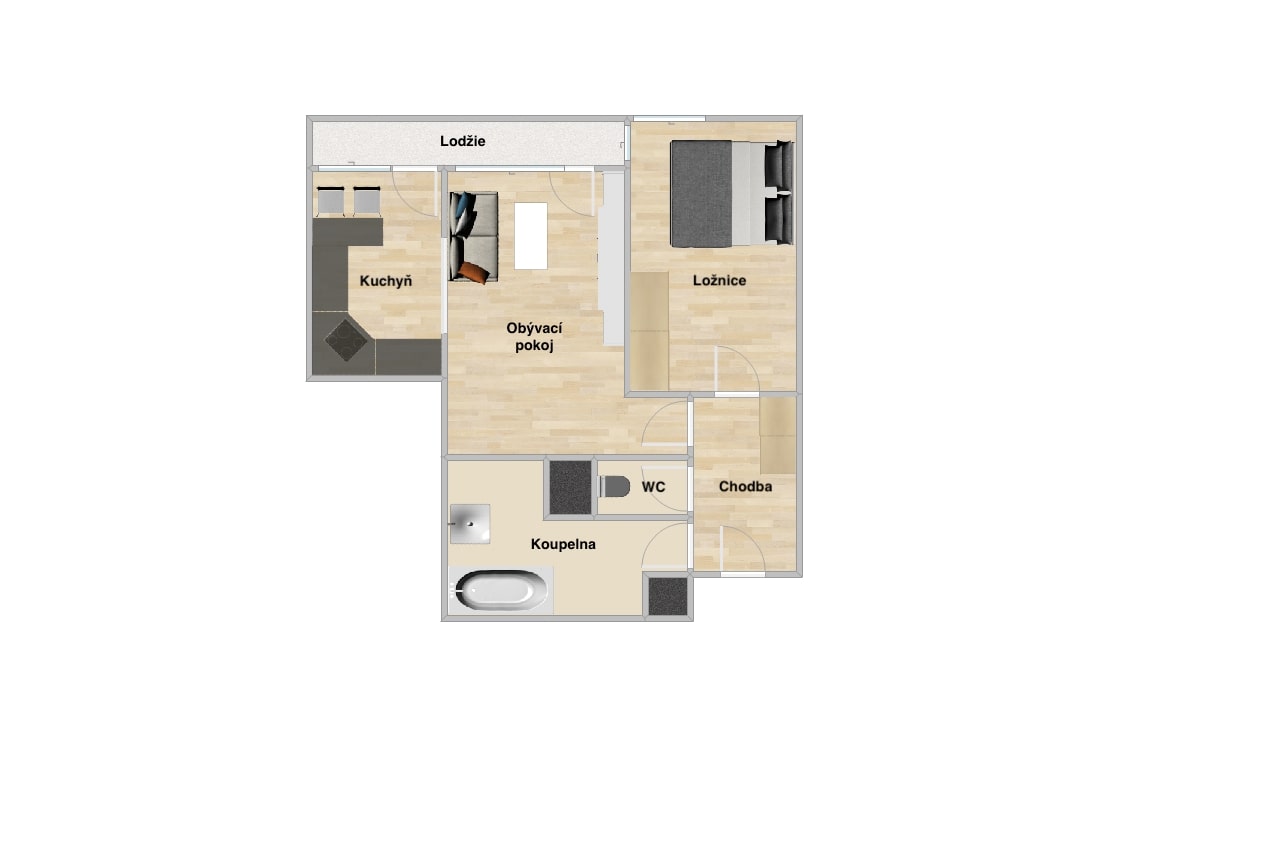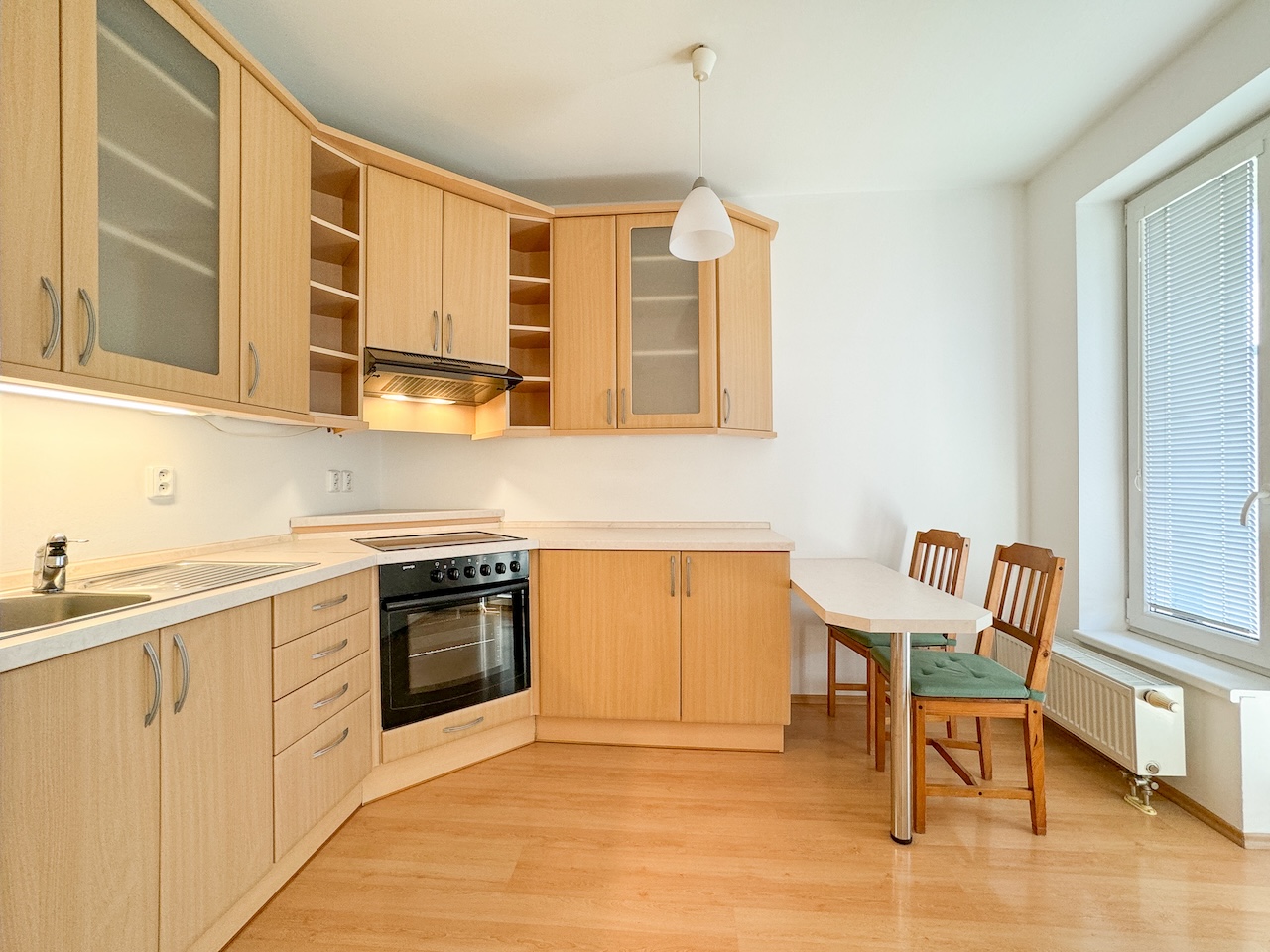 Dobře udržovaný, částečně vybavený byt může být již brzy Vaším domovem. Byt má dispozici 2+1, 48m2 + 6m2 lodžie  s výhledem do zeleného vnitrobloku. K dispozici je také garážové stání v 2.PP. Byt se nachází ve 4.NP a skládá se ze zádveří, samostatného WC, koupelny s vanou, obývacího pokoje, vybavené kuchyně a ložnice.