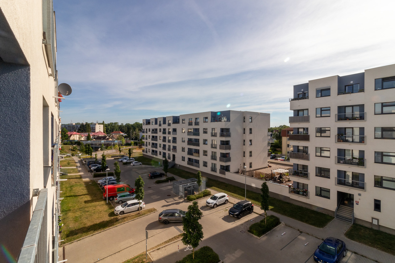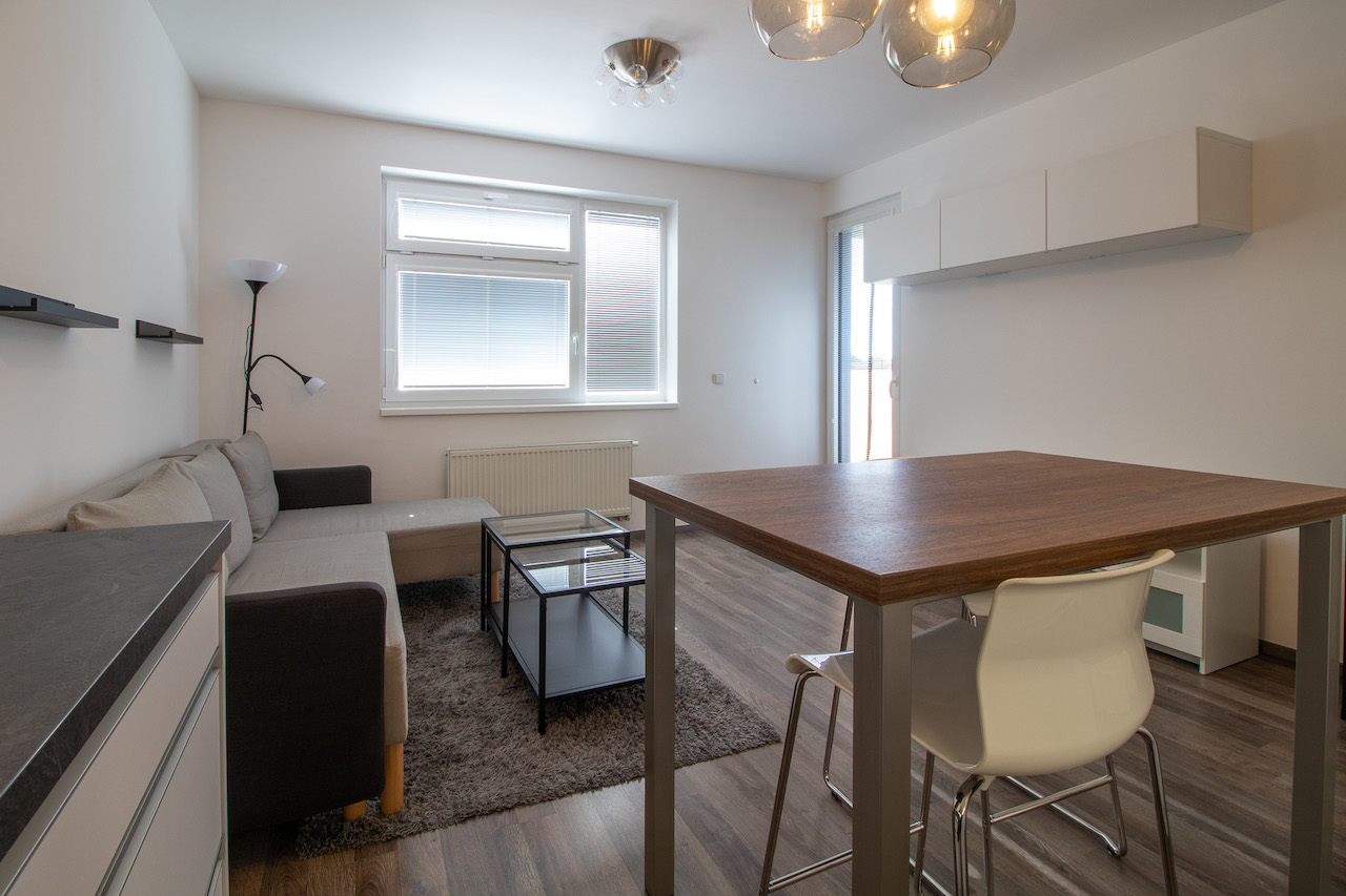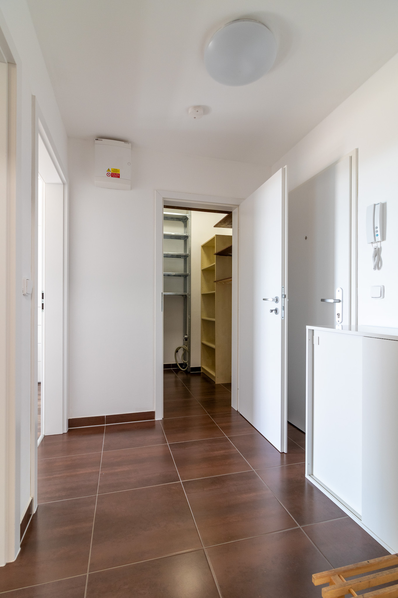 Pečlivě udržovaný, částečně vybavený byt může být již brzy Vaším domovem. Byt má dispozici 2+kk, 52m2 vč. 3,5m2 balkonu  s výhledem na východ. K dispozici je také garážové stání a sklep (5m2). Byt se nachází ve 4NP a skládá se ze zádveří, komory s úložnými prostory, obývacím pokojem se spotřebiči vybaveným kuchyňským koutem, ložnicí s vestavěnými skříněmi a koupelny s vanou a WC.