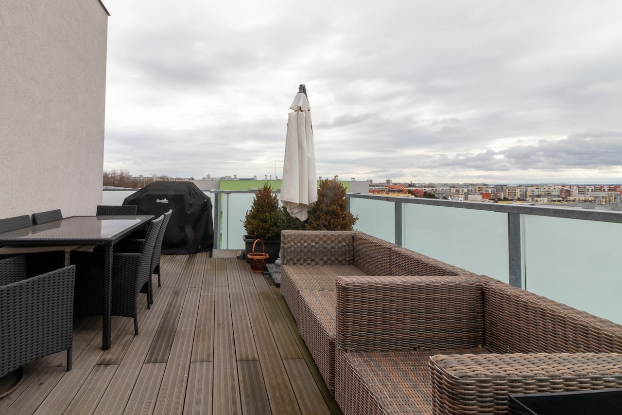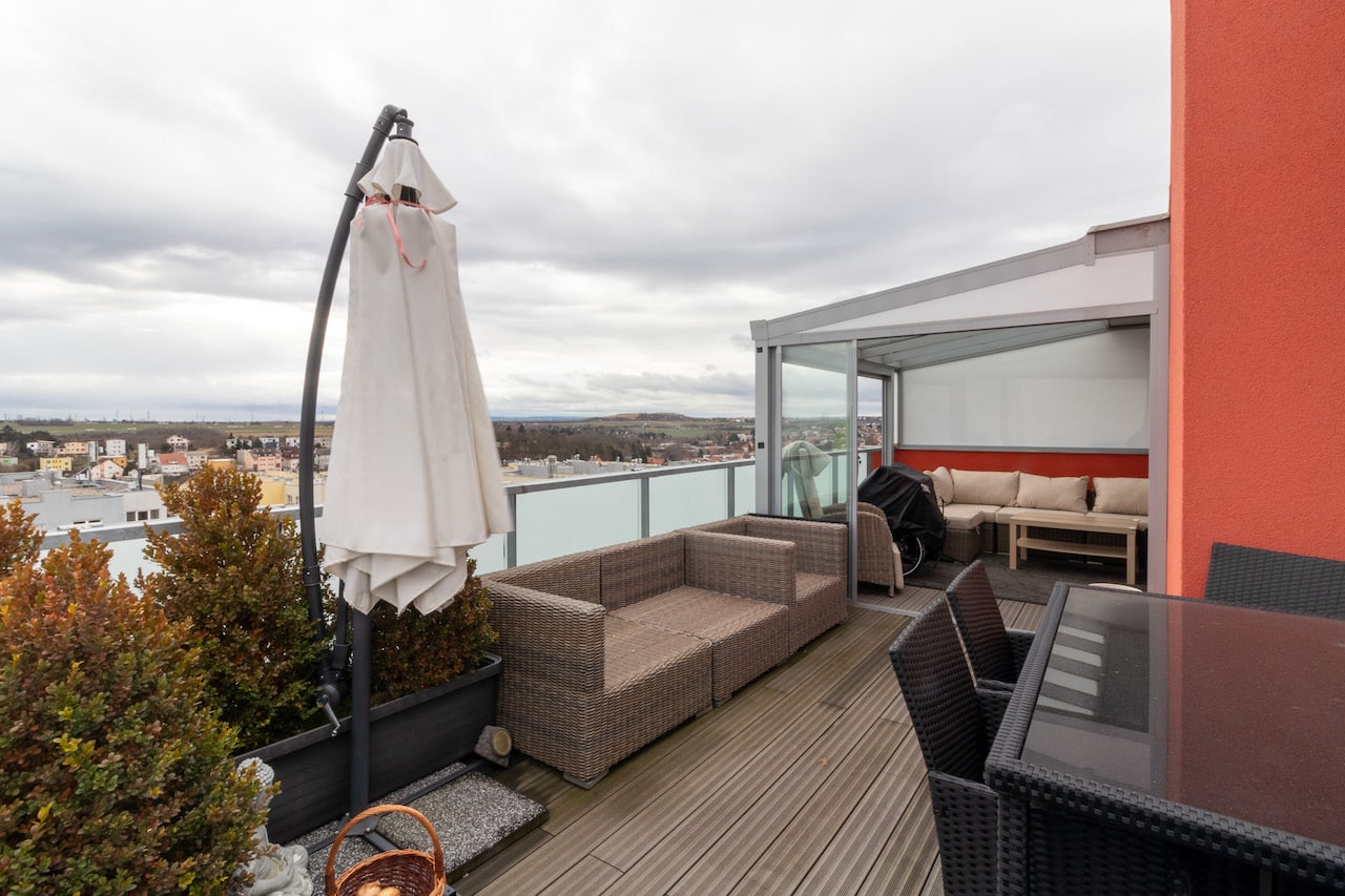 Hledáte nadstandardní, atraktivní, klidné a zároveň praktické bydlení s veškerým komfortem, občanskou vybaveností i dopravní dostupností? Tato nabídka je pro Vás. Navíc prostorná, částečně krytá terasa s hezkým výhledem je obzvláště u tohoto bytu skvělým bonusem.