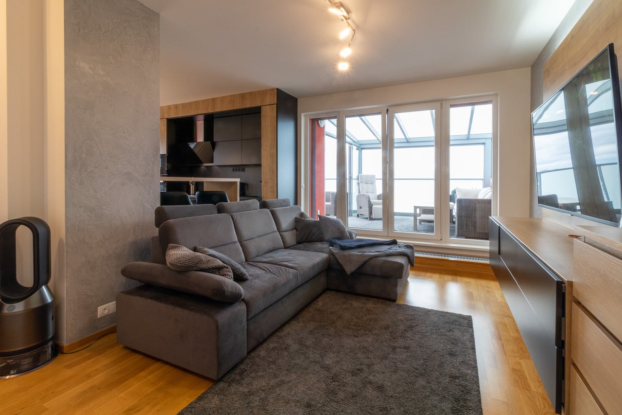 Pečlivě udržovaný, částečně vybavený byt může být již brzy Vaším domovem. Byt má dispozici 2+kk, 55m2 s 30m2 terasou s výhledem na jih a východ. K dispozici je také garážové stání a sklep. Byt se nachází v nejvyšším 5NP a skládá se ze zádveří s úložnými prostory, samostatným WC, šatnou (skladem), obývacím pokojem se spotřebiči vybaveným kuchyňským koutem, ložnicí s vestavěnými skříněmi a koupelny s atypickým (velkým) sprchovým koutem i dostatkem místa na pračku se sušičkou.