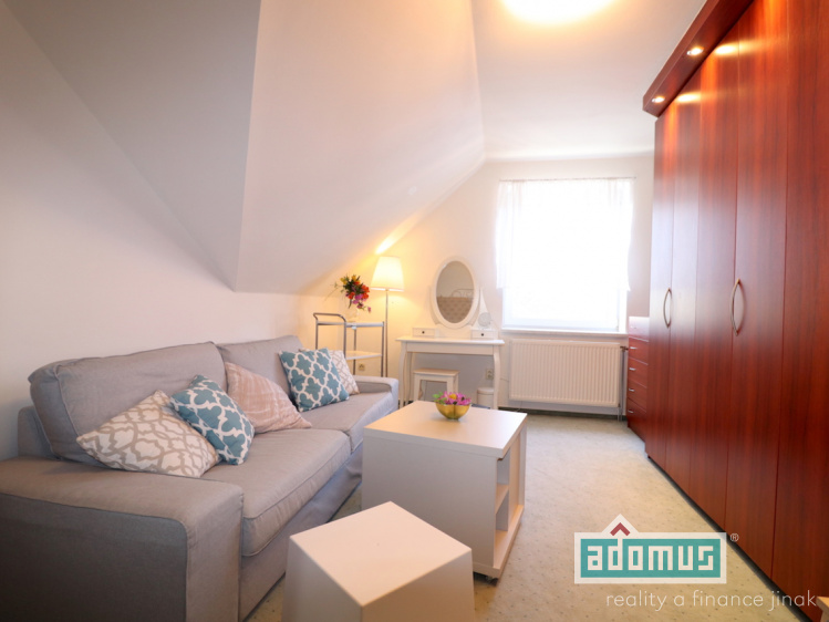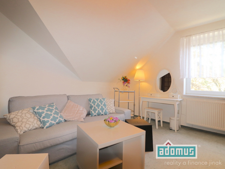 Exkluzivně nabízíme pronájem bytu „2+KK“, který byl původně zařízen jako kancelář a ateliér a díky unikátnímu vybavení stylovým nábytkem se podařilo zachovat příjemnou atmosféru a kouzlo prostředí. Byt se nachází v prvním patře rodinného domu v obci Dobříč v okrese Praha – západ. Byt má samostatný vstup, hezký, světlý a velký obývací pokoj, novou kuchyňskou skříň, (která však není vybavena spotřebiči ani umyvadlem) a v zadní části se nachází ložnice s úložnými prostory. Součástí je také koupelna se sprchovým koutem, wc a samostatný sklad a nově je vybudována přípojka na pračku. Nájemné činí 11.000Kč + fixní poplatky 3000Kč (celkem 14.000Kč/měsíc). Majitel požaduje vratnou kauci ve výši 14.000Kč + provizi realitní kanceláře 14.000,-Kč. Obec Dobříč je výjimečnou lokalitou, která je obklopena zelení, v blízkosti Prahy. Dopravní dostupnost do Prahy je autobusem. K pronájmu volné po dohodě.