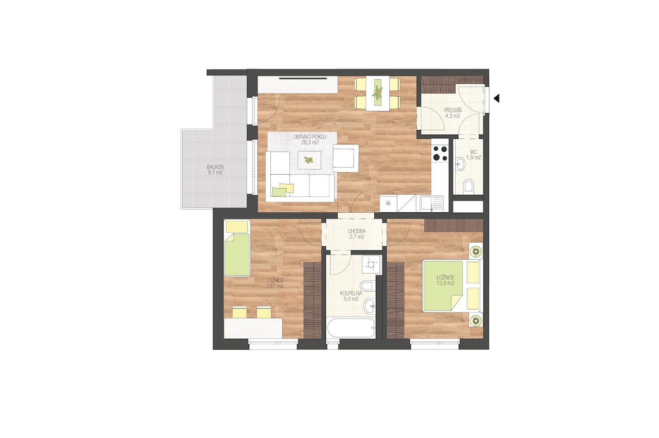 Pečlivě udržovaný, částečně vybavený byt může být již brzy Vaším domovem. Byt má dispozici 3+kk, 80m2 vč. 6m2 balkonu s výhledem na jihozápad. K dispozici je také garážové stání a sklep (3 m2). Byt se nachází ve 2.NP a skládá se ze zádveří, samostatného WC, obývacího pokoje se spotřebiči vybaveným kuchyňským koutem, ložnicí, detským pokojem a koupelny s vanou a druhým WC.