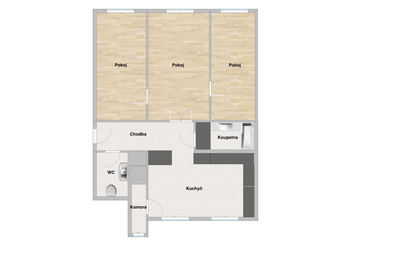 Byt se pronajímá krom kuchyně nevybavený a veškeré detaily si tak můžete doladit dle svých preferencí. Ideálně, kdyby se Vám v bytě líbilo dlouhodobě. Ohřev vody zajišťuje bojler, topení pak elektrokotel Protherm.